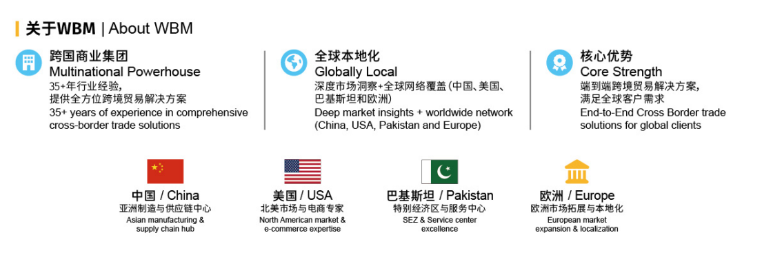 WBM集团全球化产能与资产布局;全域化市场覆盖与渠道体系;多元化业务生态(10 大核心板块・超 2000 款产品)
